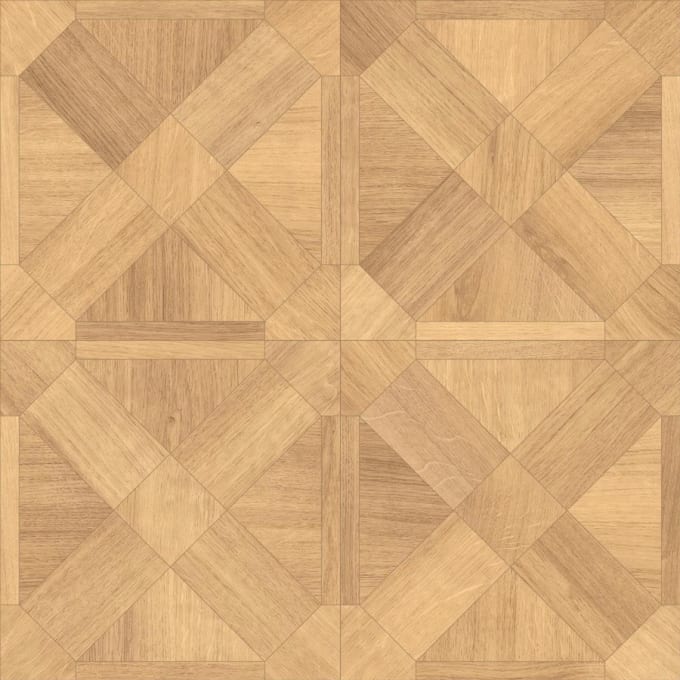 White Oak’s warm tone and simple grain work well with the sharp angles and framing of this intricate pattern.