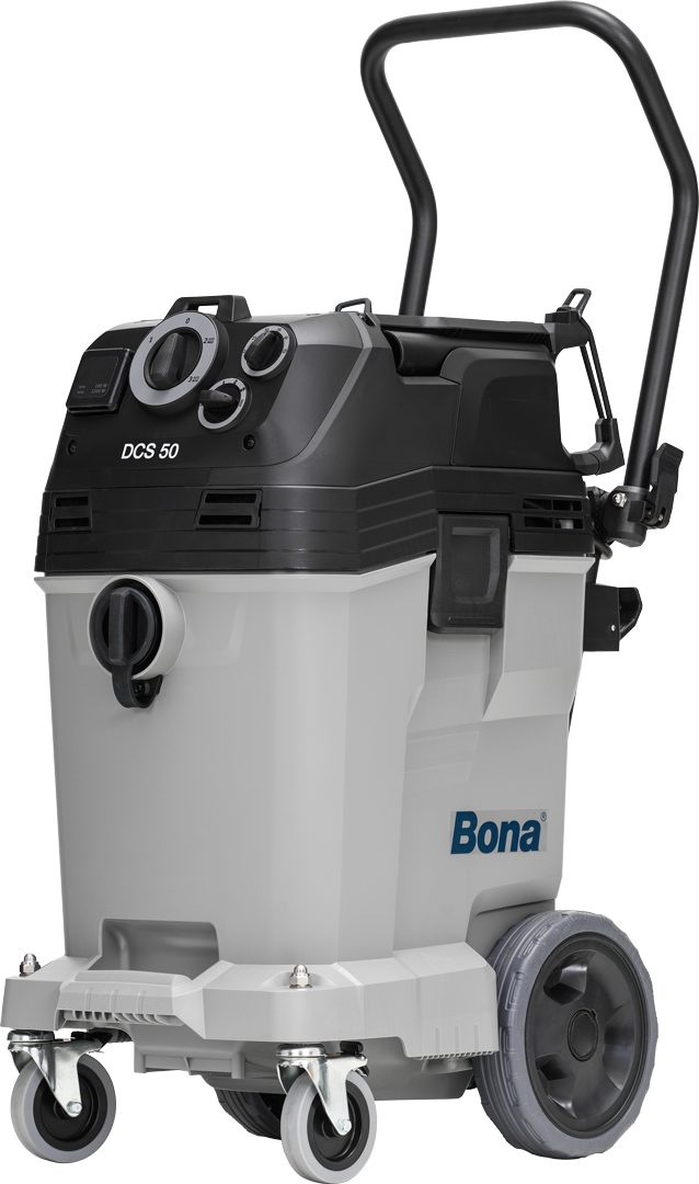Powerful vacuum unit intended for both dry and wet cleaning. As part of the Bona Dust-Free sanding solution, DCS 50 collects the fine and hazardous wood dust from all Bona sanding machines. The efficient fully automatic filter cleaning system ensures sustained high suction power. Its compact and ergonomic design makes it easy to handle and to take along to any job site.