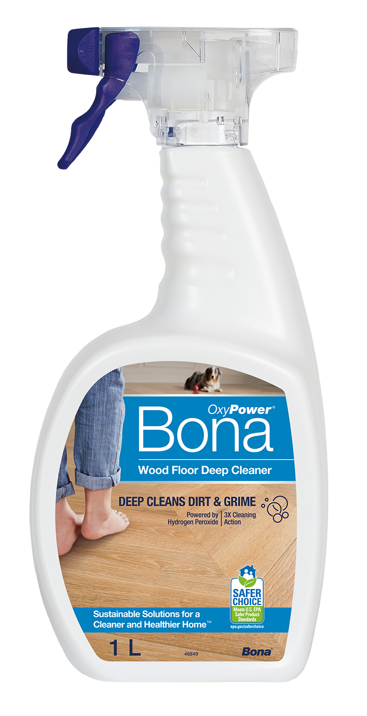 Our most powerful cleaner yet! This oxygenated formula releases thousands of micro-bubbles giving you 3X the cleaning action: loosens heavy dirt build-up, dives deep to remove stuck-on messes, and lifts away stains via bubbling action to provide a deep clean for your wood floors without the extra effort. The waterbased solution and SAFER CHOICE certification ensure a safe product for your floors. Use Bona OxyPower Wood Floor Deep Cleaner with Bona OxyPower Microfiber Deep Clean Pad for the ultimate cleaning performance.