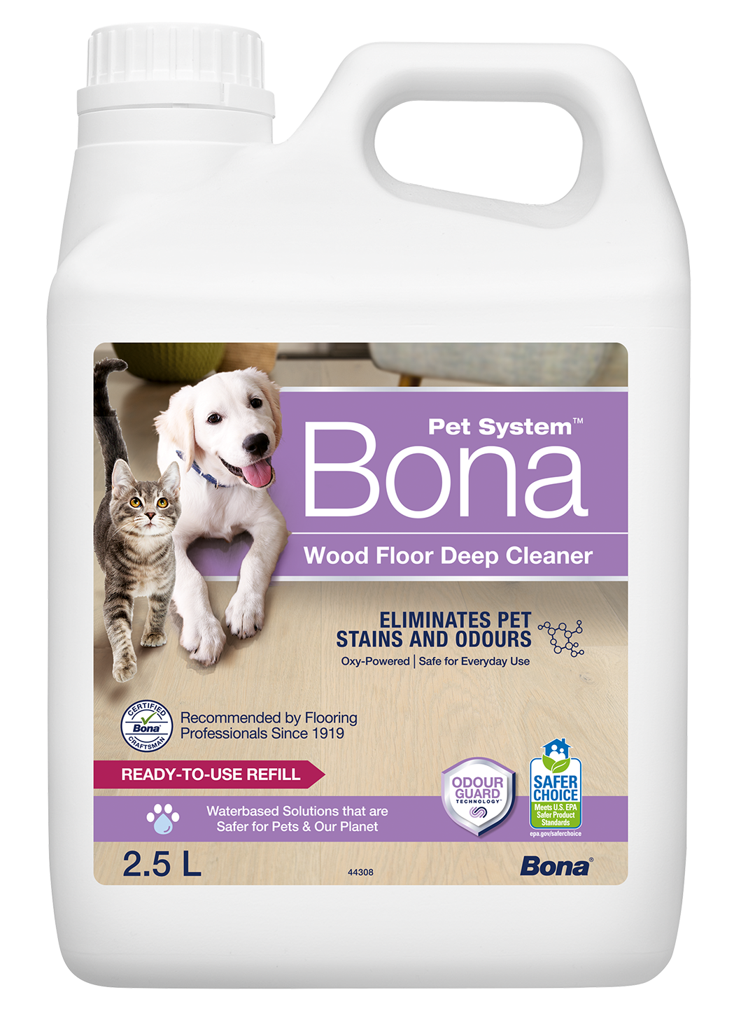Relax, Bona makes it easy to care for your wood floors. When it comes to cleaning messes made by our furry friends, look to the brand trusted by flooring professionals since 1919. Bona’s oxy powered floor cleaner deep cleans and penetrates through tough stuck-on stains, tracked in dirt, and accident messes with the cleaning power of hydrogen peroxide. The Odour Guard Technology™ eliminates and neutralises urine and other organic odours upon contact.