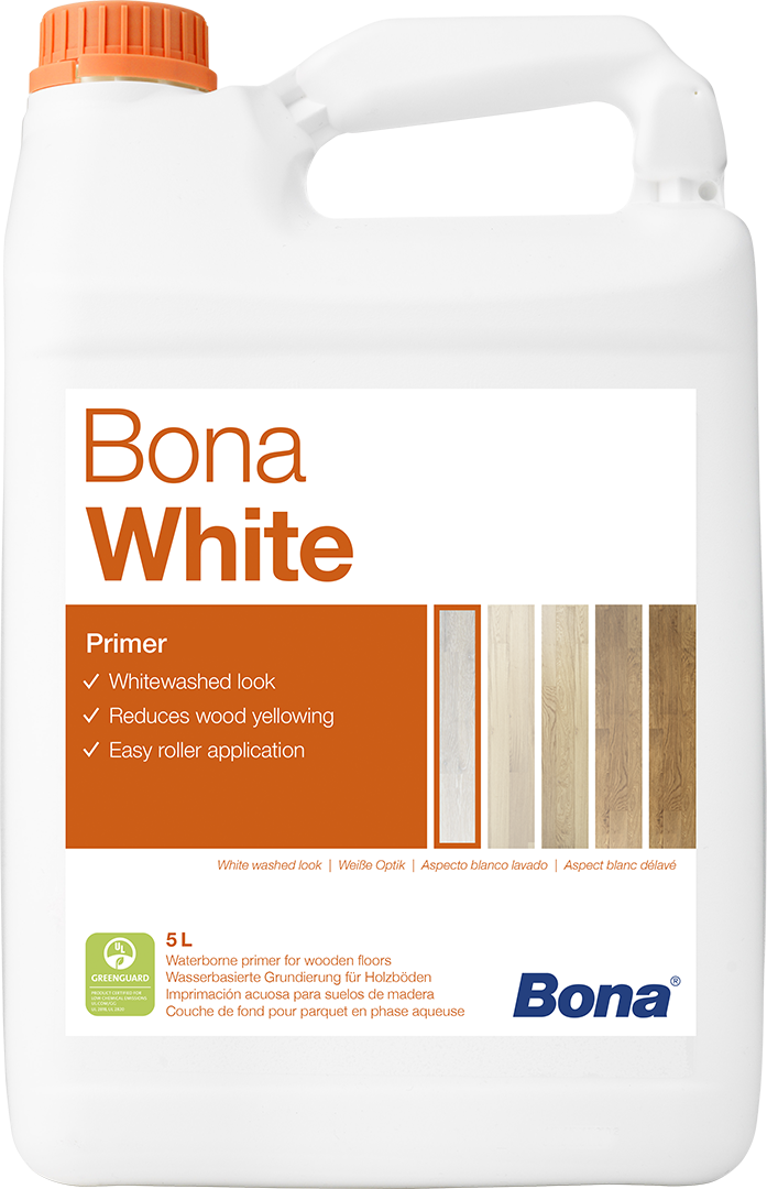 The intensity and depth of colour can be controlled by the number of applications. For the best appearance combine Bona White with Traffic HD Raw, Traffic HD Extra Matt, Traffic GO Extra Matt & Ultra Matt, Bona Mega EVO Ultra Matt & Extra Matt or Bona Mega ONE Extra Matt.