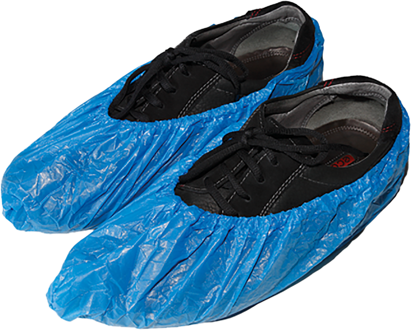 Single-use plastic shoe covers.