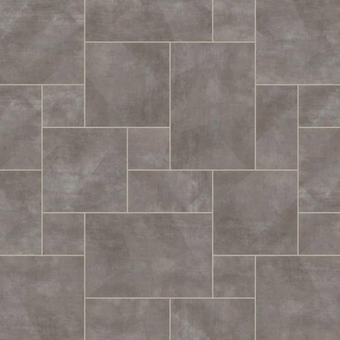 Weathered grey hues move across this large format pattern, defined by warm stripping.