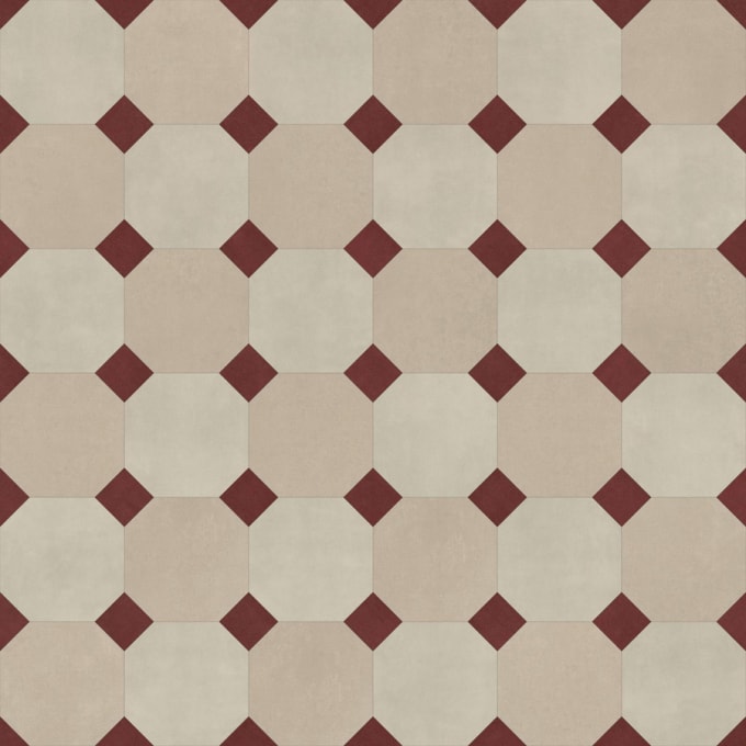 A rich burgundy diamond within a field of earthy, natural stone gives this pattern an elevated and opulent feel.