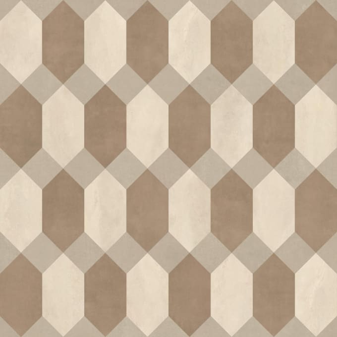 A tonal, earthy palette combined with a modern geometric pattern creates a natural colourway with a retro edge.