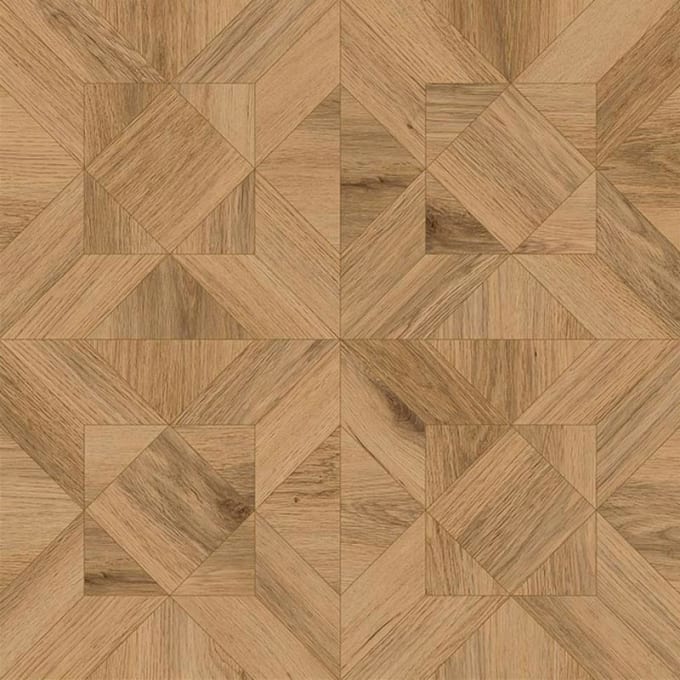 The soft, golden tones of classic York Oak work beautifully in this elegant pattern, inspired by traditional marquetry.